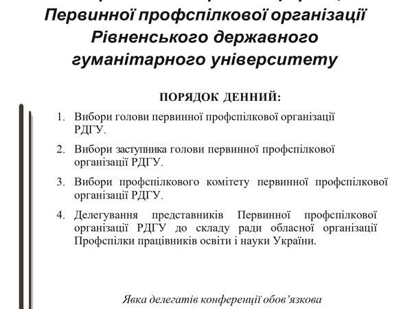ВІДБУДЕТЬСЯ дострокова виборна конференція Первинної профспілкової організації Рівненського державного гуманітарного університету
